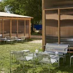 Concept: Palissade is an elegant series of outdoor furniture designed by the two French brothers, Ronan & Erwan Bouroullec. Palissade is a collection of beautiful and robust outdoor furniture which has a simple design language that makes them easy to use and decorate, from the backyard to larger public park areas or the small outdoor Café. The design behind the beautiful series is based on a monotonous design language, as the entire collection is created from round metal pipes and metal slats. Based on this simple design, the two brothers have managed to produce a large number of different versions of Palissade which include benches, stools and chairs. The Palissade Ottoman is the perfect addition to both the armchairs as well as the benches in the Palissade series. Use it to swing your legs up so you can really sit back and relax. If you wish, you can also easily use the ottoman as a small side table for the various chairs in the Palissade series.