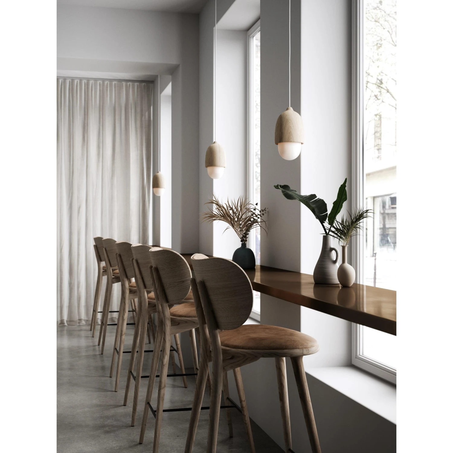 Design: Space Copenhagen for Mater Concept: Maters High Stool is an elegant design piece that brings a unique Danish expression to any home or commercial space. Designed by the renowned Danish design duo, Space Copenhagen, this is a bar stool that really brings style and quality with it. With a wide and comfortable seat which is produced in wood and leather, and a body as well, the bar stool quickly comes into focus. This version also comes with a back, which makes the seating comfort in this stylish chair even higher. In the style of large parts of Mater’s range, the High Bar Stool is also made of sustainable wood, which is FSC certified. The high stool comes in two different heights, both of which can be used in many places. The smaller version of 69 cm does especially well on kitchen islands, whereas the high version is best suited for bare areas.