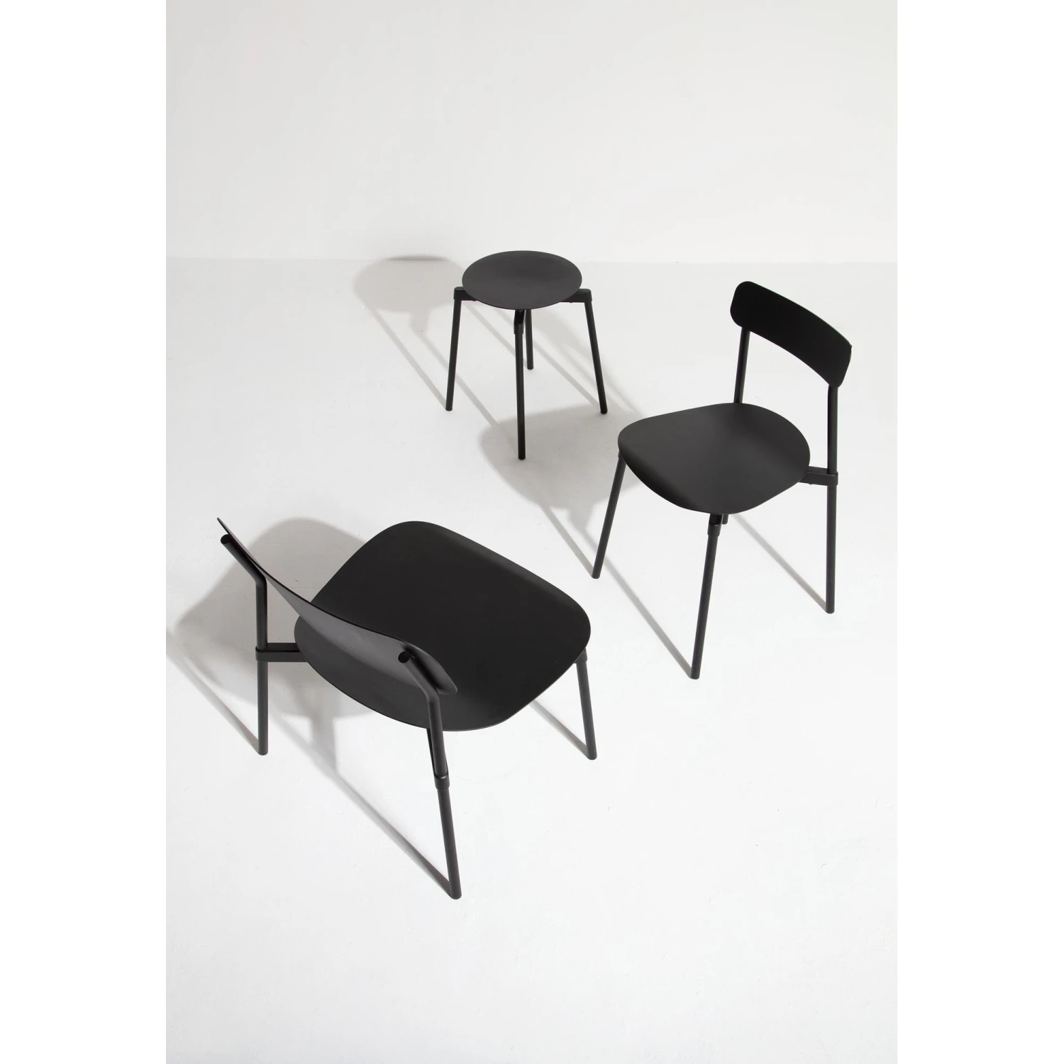 The Fromme series from Petite Friture is a series of aluminum furniture that can be used indoors and outdoors. The fine details bring the various pieces of furniture in the series beautifully together and tie the indoor or outdoor space together in an overall elegant and charming environment. The chair seats and the table tops have the common feature of almost floating on the frame, as the assembly is done vertically on the frame, which gives a light finesse and degree of detail that gives the series personality and charisma.