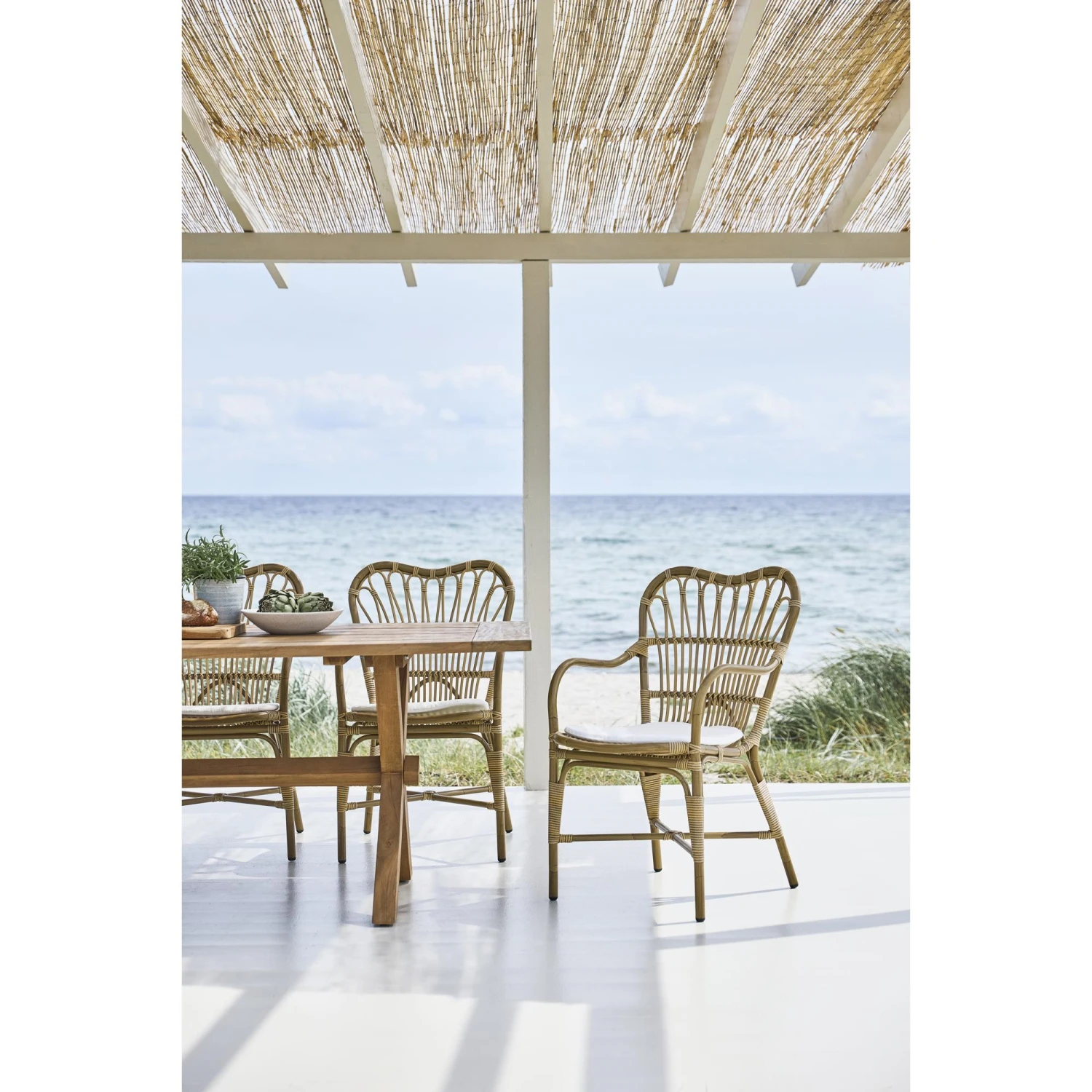 Concept: Margret Exterior is an elegant outdoor wicker chair designed by Sika-Design. This wicker chair has a high and wide backrest and beautiful curved armrests that ensure extra comfort and support. This classic wicker chair with its detailed windings creates a cozy atmosphere in both the conservatory and the outdoor oasis. This chair is made with powder-coated aluminum, combined with Sika-Design’s own ArtFibre material. ArtFibre is a robust and weather-resistant material made of polyethylene, which makes it resistant to rain, frost and UV radiation. This means that the chair can be left outdoors all year round without affecting the design or quality